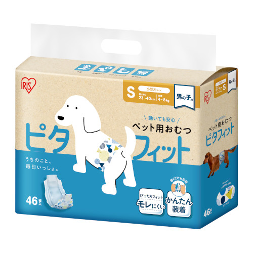 たっぷり吸収し、長時間動いても快適な男の子用のペット用おむつです