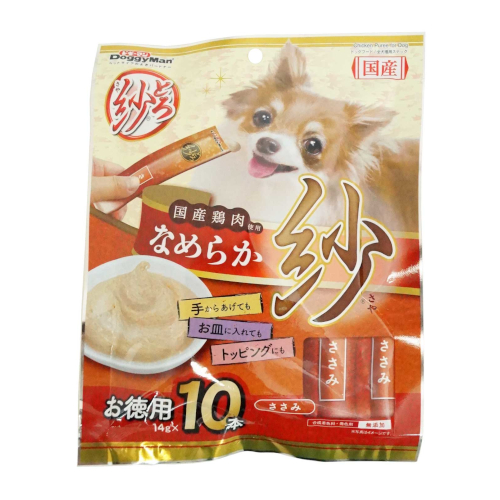 ●原材料(成分):鶏肉(胸肉、ササミ、チキンパウダー)、調味料、増粘安定剤(加工でん粉、増粘多糖類)、ビタミンE