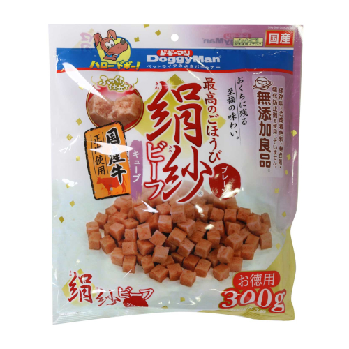 ●原材料(成分):肉類(鶏ササミ、鶏肉、牛肉〈国産牛正肉を含む〉)、小麦粉、糖類、タピオカでん粉、コラーゲンペプチド、魚軟骨抽出物(コンドロイチン含有)、グリセリン、トレハロース、膨張剤、ソルビトール、ミネラル類(ナトリウム)、調味料、着色料(カラメル、クチナシ)、ポリリン酸ナトリウム、グルコサミン