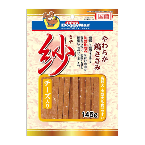 ●原材料(成分):鶏肉(胸肉、ササミ)、コーンスターチ、チーズ、ソルビトール、グリセリン、pH調整剤、プロピレングリコール、ミネラル類(ナトリウム)、リン酸塩(Na)、酸化防止剤(ビタミンC)、発色剤(亜硝酸ナトリウム)、セルロース、調味料、着色料(赤102、黄5)