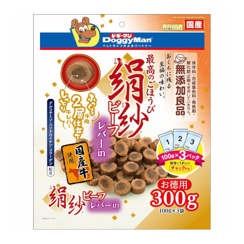 ●原材料(成分):肉類(牛肉、牛レバー、鶏ササミ、鶏胸肉、鶏肉)、小麦粉、糖類、コーンスターチ、タピオカでん粉、コラーゲンペプチド、軟骨抽出物(コンドロイチン含有)、グリセリン、トレハロース、ソルビトール、膨張剤、リン酸塩(Na、K)、着色料(カラメル、クチナシ)、ミネラル類(ナトリウム)、グルコサミン