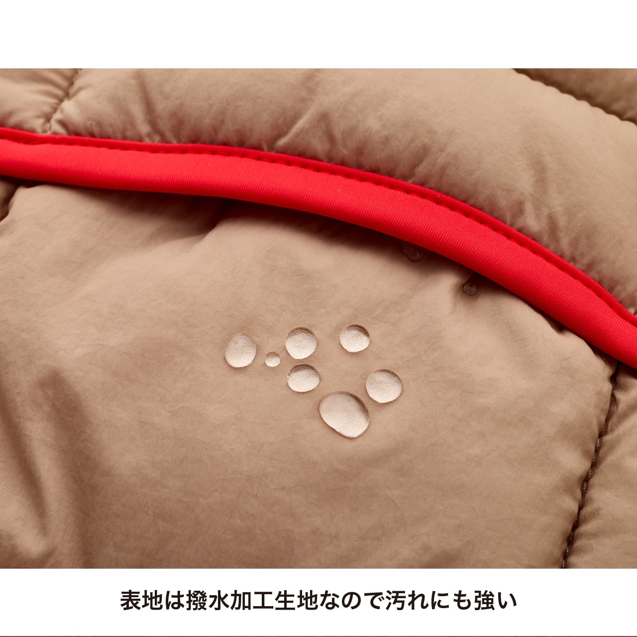 ちょっとした小雨を弾くなめらかな撥水素材で、汚れや毛も付きにくい。