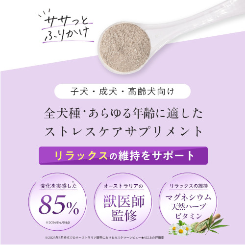 ●ペット愛護先進国オーストラリアで90%の高評価を取得した、全犬種、子犬〜高齢犬まで安心して使える獣医師監修のサプリメントです。