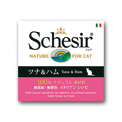 ●成猫用●ゼリー●原材料:ツナ51%、ハム6%、ビタミンA1325IU、ビタミンD3110IU、ビタミンE15mg、タウリン160mg ●78.1kcal/100g●生産国:タイ